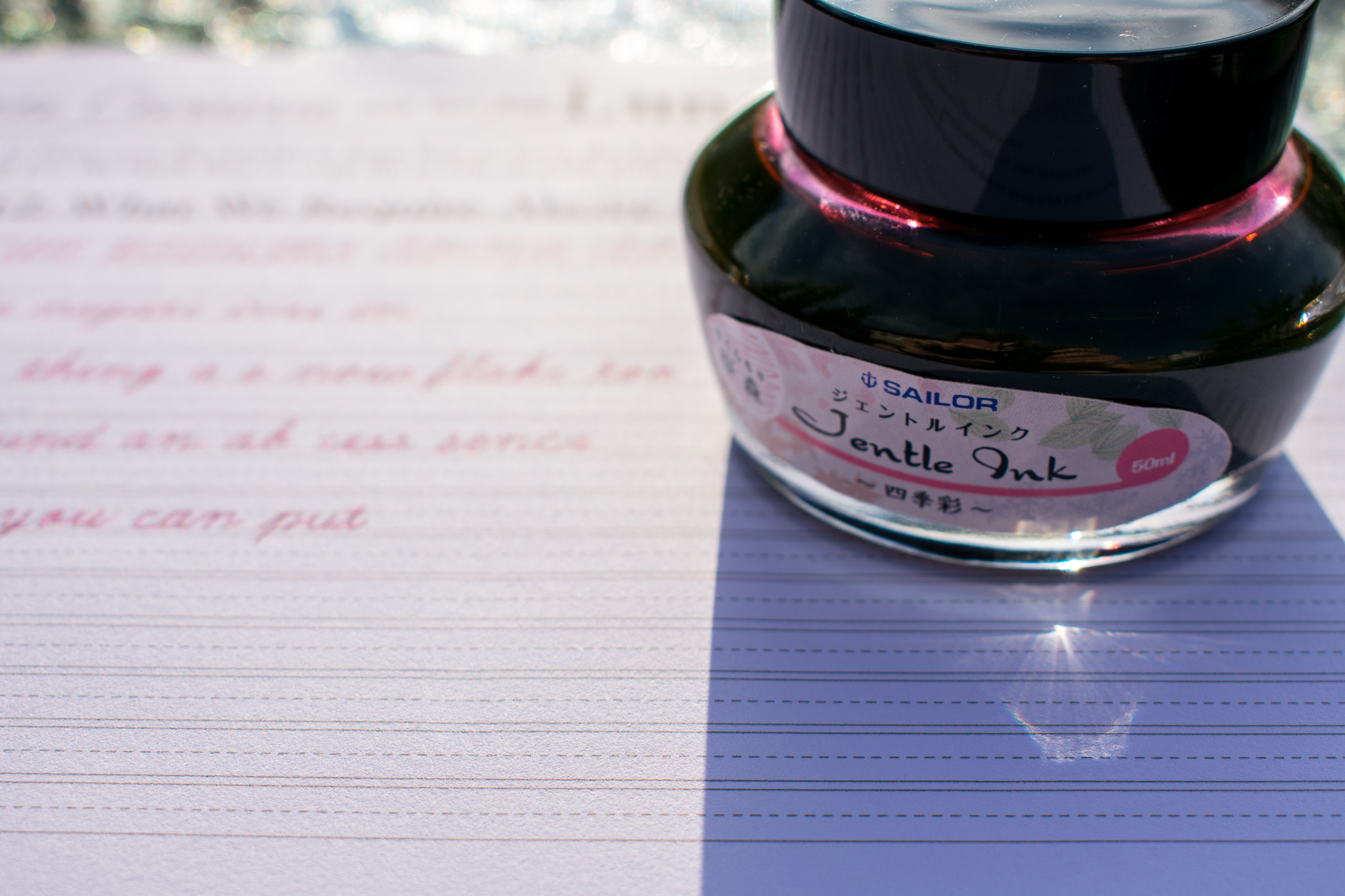 May I present to you a Platinum Plaisir with a number 3 nib. It is loaded up with one of Sailor’s prettiest Jentle Inks, Sakura Mori, or literally, cherry-blossom forest. I absolutely adore this ink. I mean, look at it!