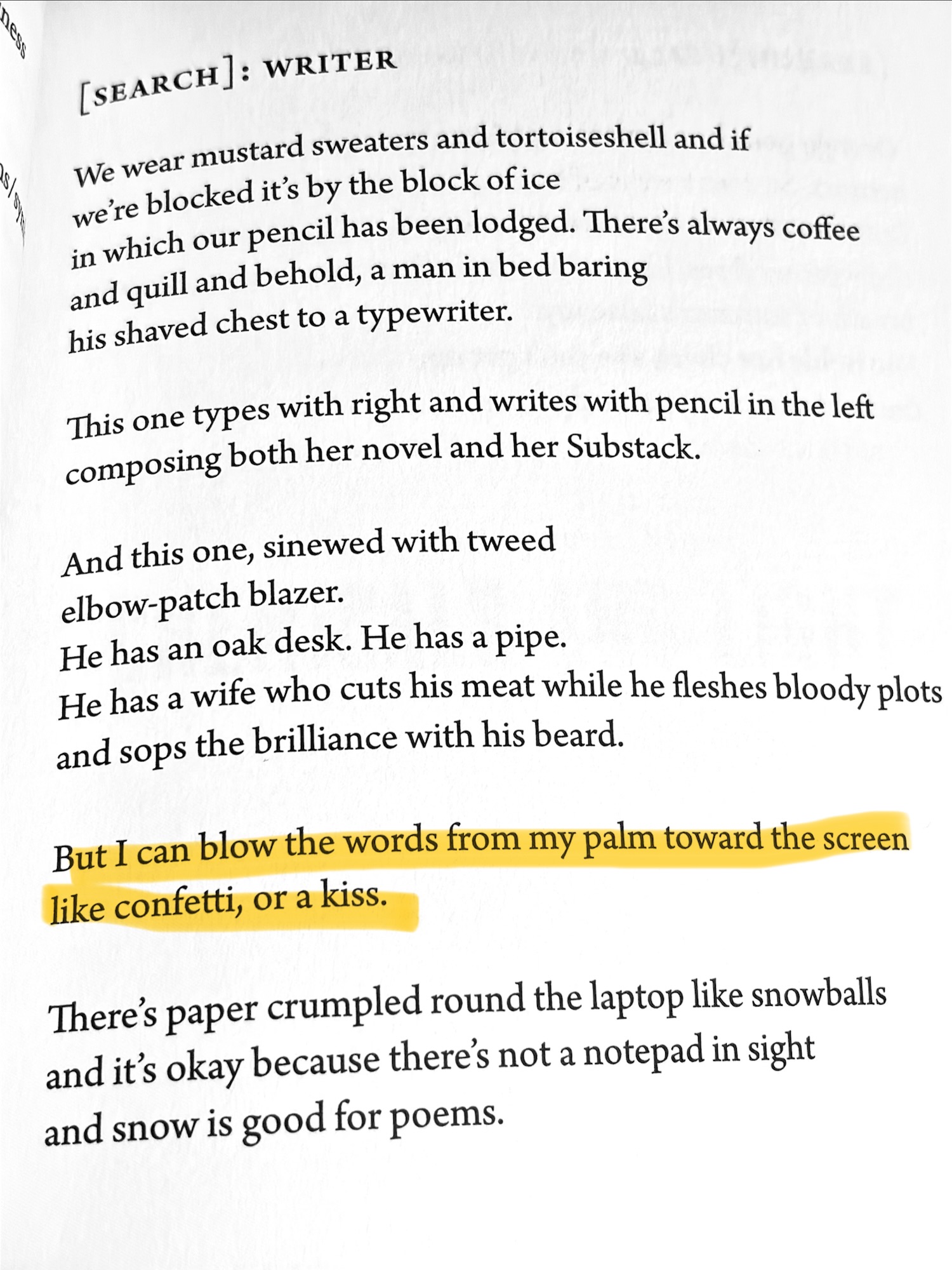 My daily life falls into the latter category. My entire professional life has been on the corporate side of this equation. The poems in this collection that deal with office culture hit home (work?) with force. I feel so seen in so many of these poems.