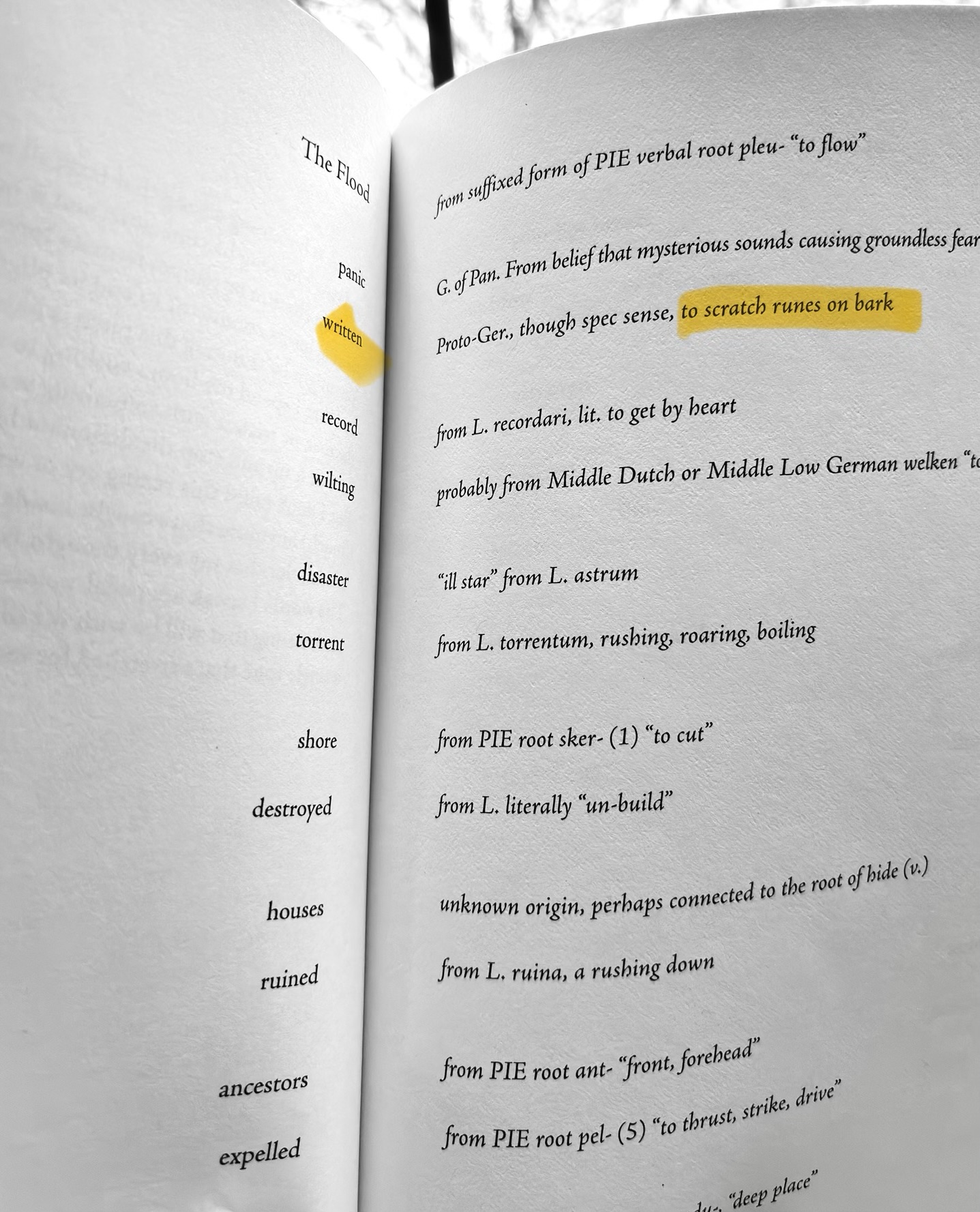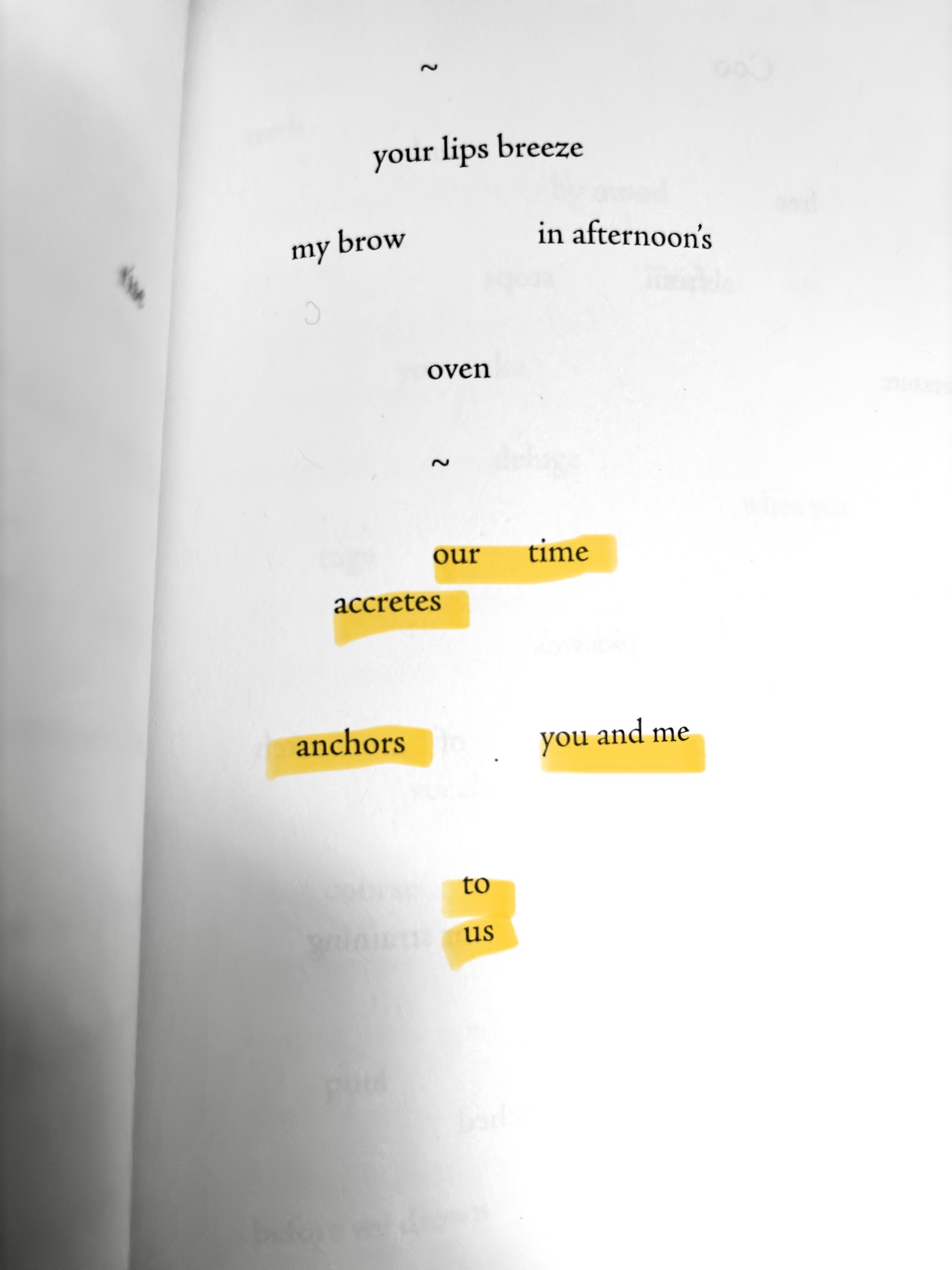 That realization came in the sixth poem, ‘Partial Concordance to a Missing Poem’ and the bottom fell out of my stomach and kept falling until it hit the pair of lines just over half way down the page: